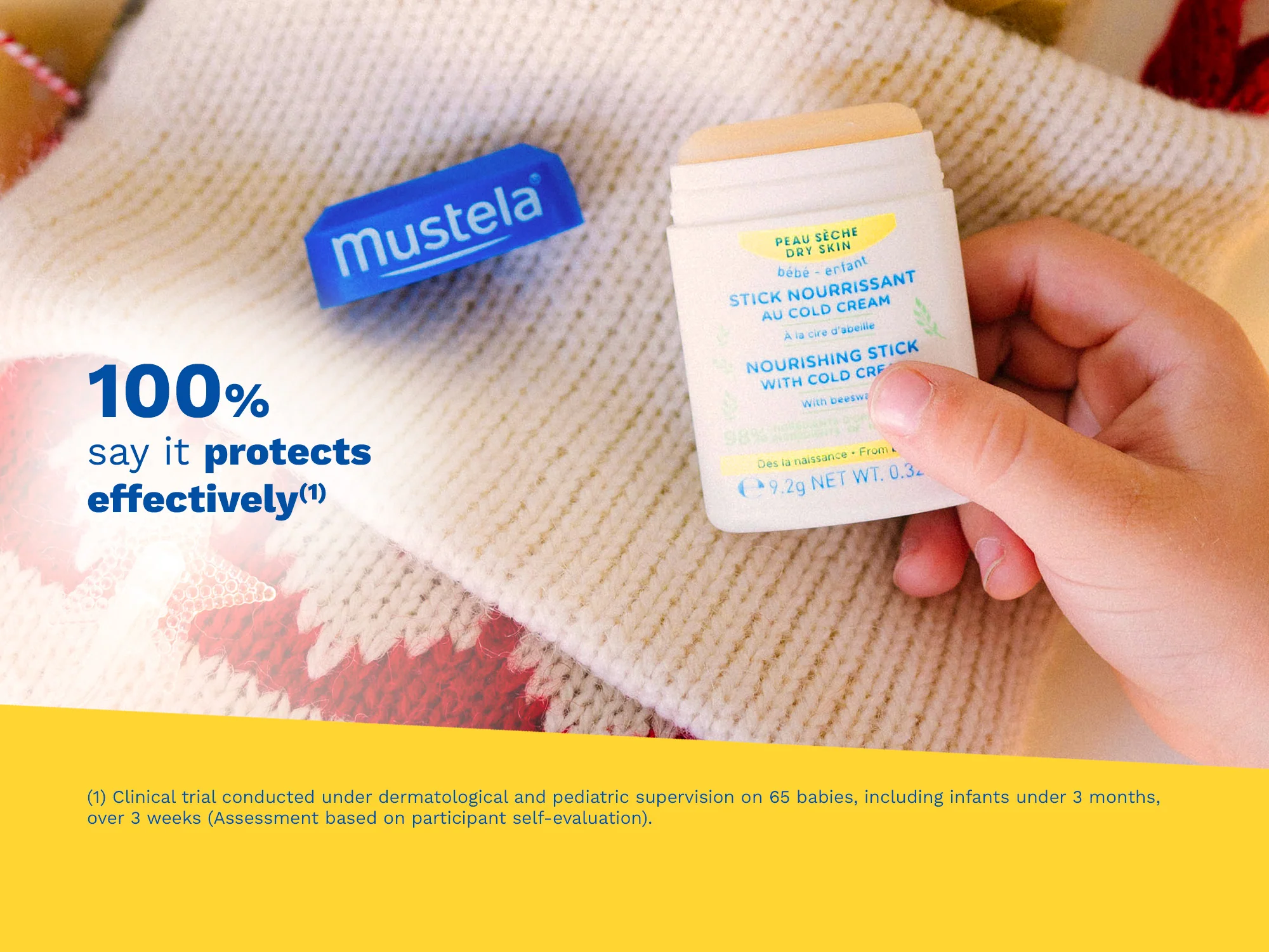 Nourishing stick with cold cream is a pocket-sized, travel-friendly solid moisturizer that provides heavy-duty skin protection to relieve dry cheeks and lips. This conveniently sized mini hydrating stick glides on gently and forms a protective barrier against environmental conditions such as cold air and wind. Composed of 98% ingredients of natural origin per ISO 16128 standard and formulated with natural Cold Cream, lipid-replenishing ceramides, and softening and soothing Shea Butter to provide immediate and long-lasting hydration.